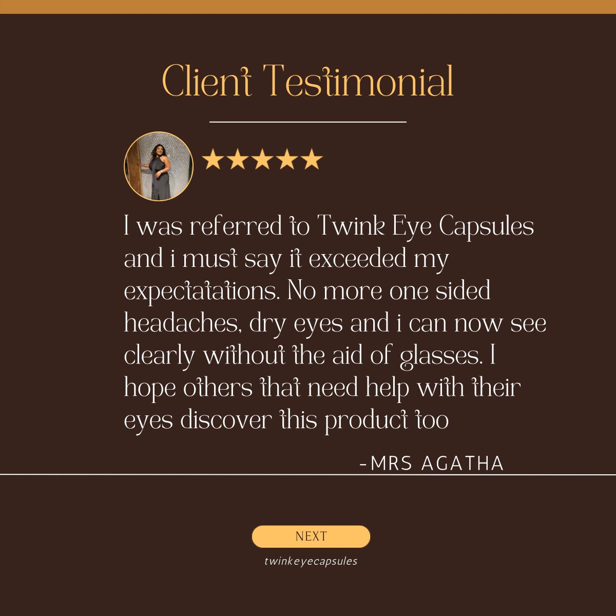 To my surprise, after just one month, I noticed real improvements! My vision is clearer, I can now attempt to read without stress, and moving around at night is no longer a challenge as i don't need my children walking me around. I feel like I have my independence back, and I am so grateful. Twink truly works!