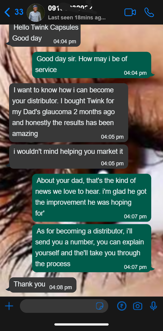 If you have eye challenges, Twink Eye Capsules is 100% worth the trial, you will be amazed at how fast your vision gets better within a couple of days.